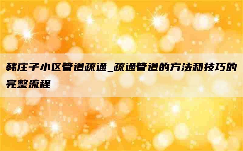 为了确保高效而安全地进行韩庄子小区管道疏通工作,以下是一个完整的流程: