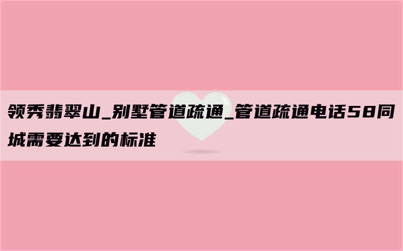 管道疏通电话同城标准是保证领秀翡翠山别墅居民生活质量的关键
