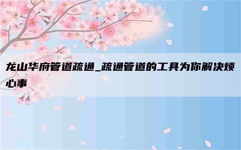 当你遇到管道堵塞问题时,请记得找到龙山华府管道疏通服务。他们将用专业技术、高效手段解决你的烦心事,并确保你能够享受畅快无忧的生活或工作环境。