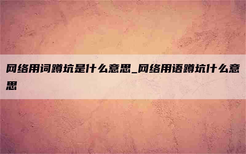 网络用词蹲坑是什么意思_网络用语蹲坑什么意思