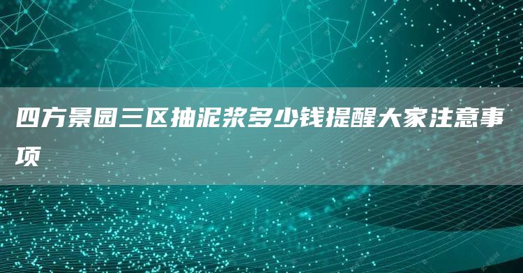 1、四方景园三区抽泥浆多少钱提醒大家注意事项